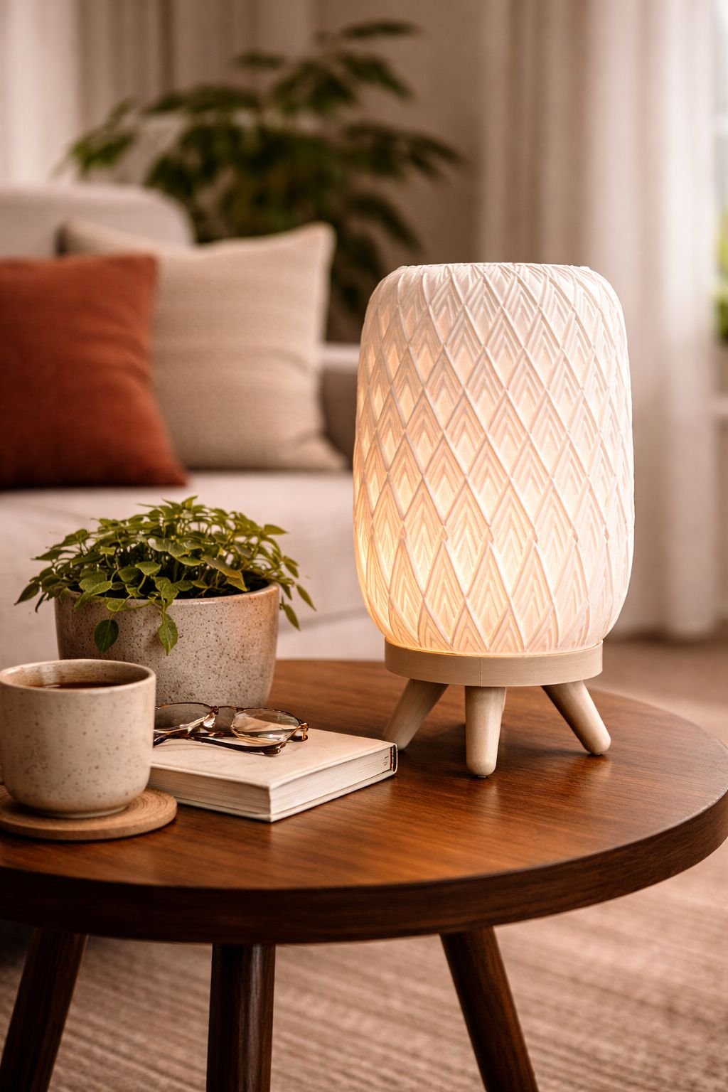 Compact and stable, LINA fits comfortably on bedside tables, desks, shelves, or sideboards.
