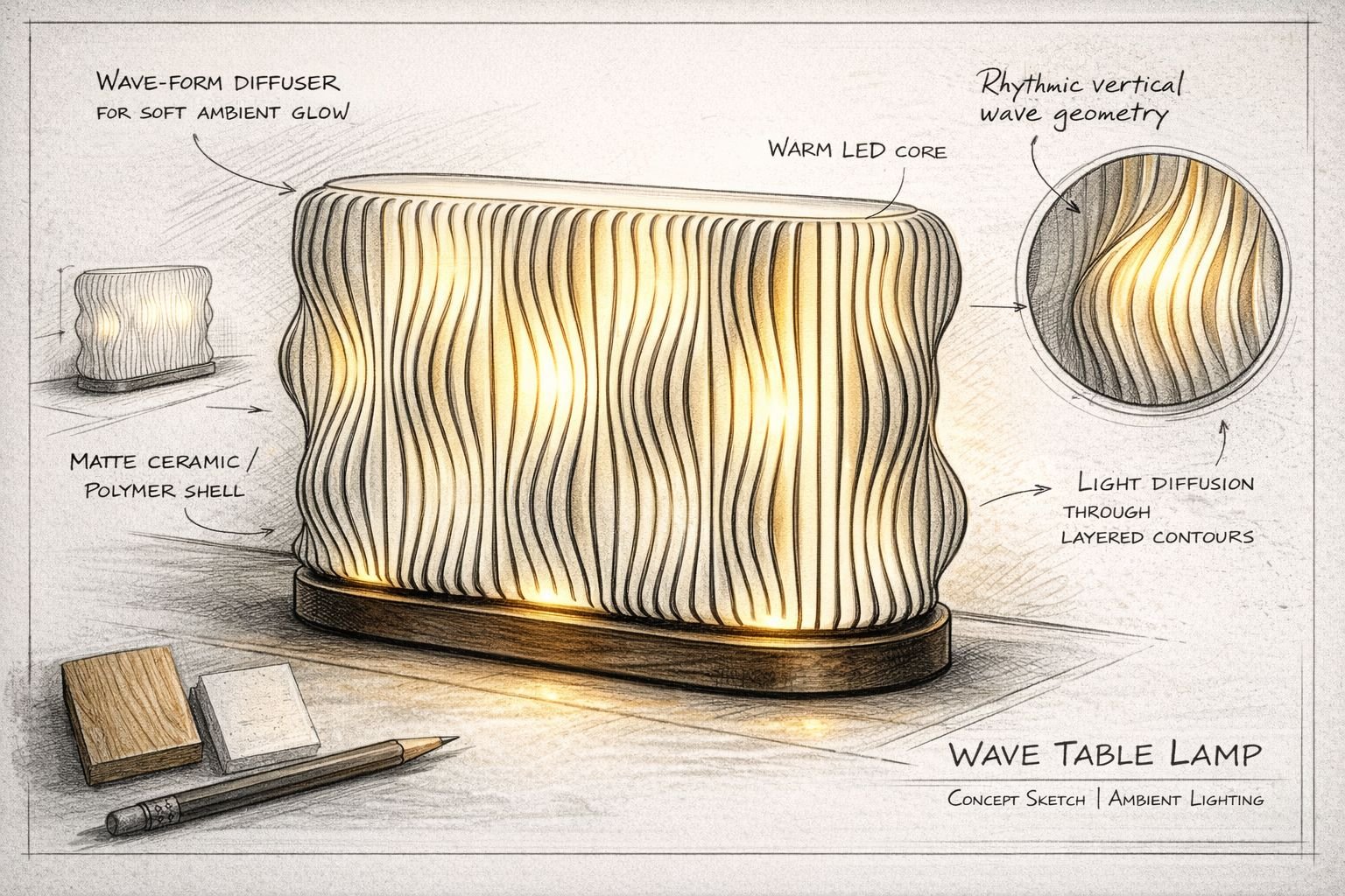 Soft, flowing shape that gently diffuses light for a warm, comfortable atmosphere.